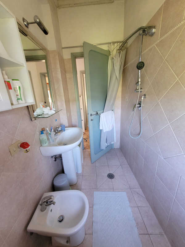 Primo Piano: Zona notte composta da 2 ampie camere matrimoniali, 1 cameretta con letto a castello, 2 bagni con doccia e 1 bagno con vasca.